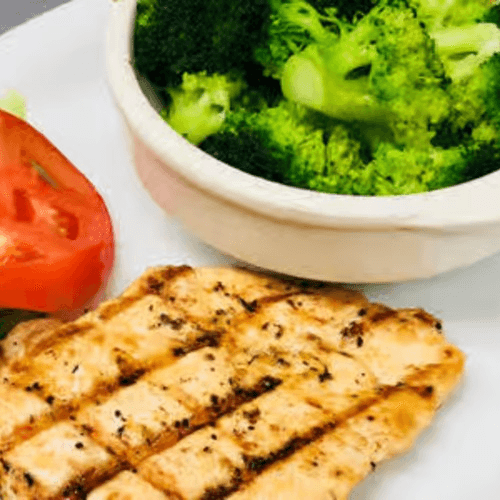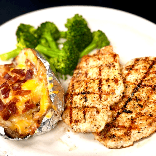 Tender chicken breast lightly seasoned and grilled to perfection. Served with your choice of two sides. Fresh roll served upon request