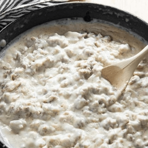 Our buttermilk biscuits smothered with thick meaty gravy