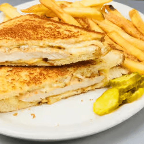 Tender and juicy breaded chicken breast, covered in Frank’s red hot buffalo sauce, topped with Swiss cheese, pickles, lettuce and tomato
