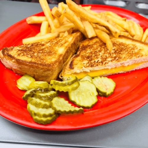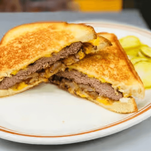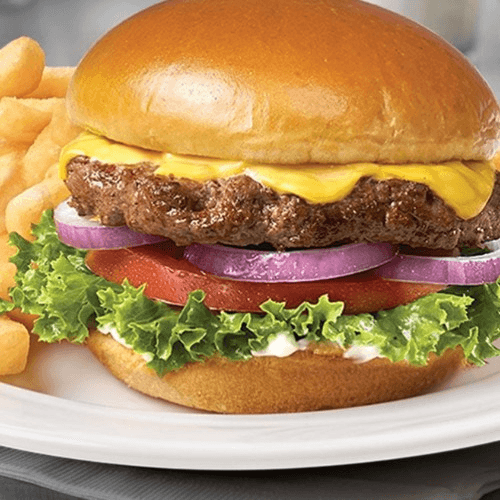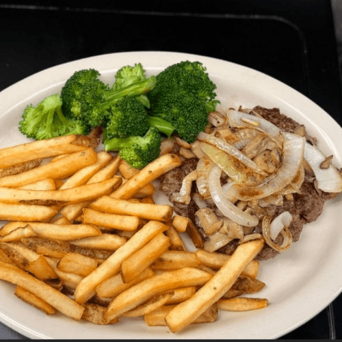 10 oz hand-formed patty is grilled to order and topped with grilled onions. Served with your choice of two sides. Roll upon request