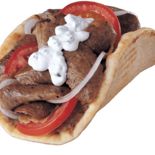 Gyro meat, onions and tomatoes on pita bread. Served with homemade cucumber-sour cream sauce
