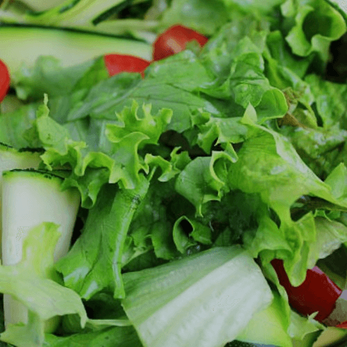 Fresh mixed greens with tomato, cucumber, hard-boiled egg, broccoli, cauliflower, green pepper, onion, Swiss and American cheeses